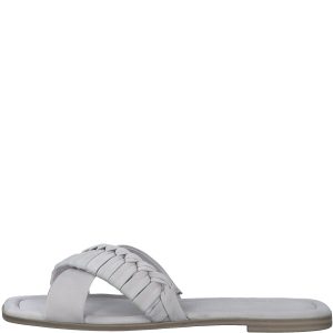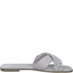 כפכפי עור עקב נמוך עם צמה / אפור בהיר