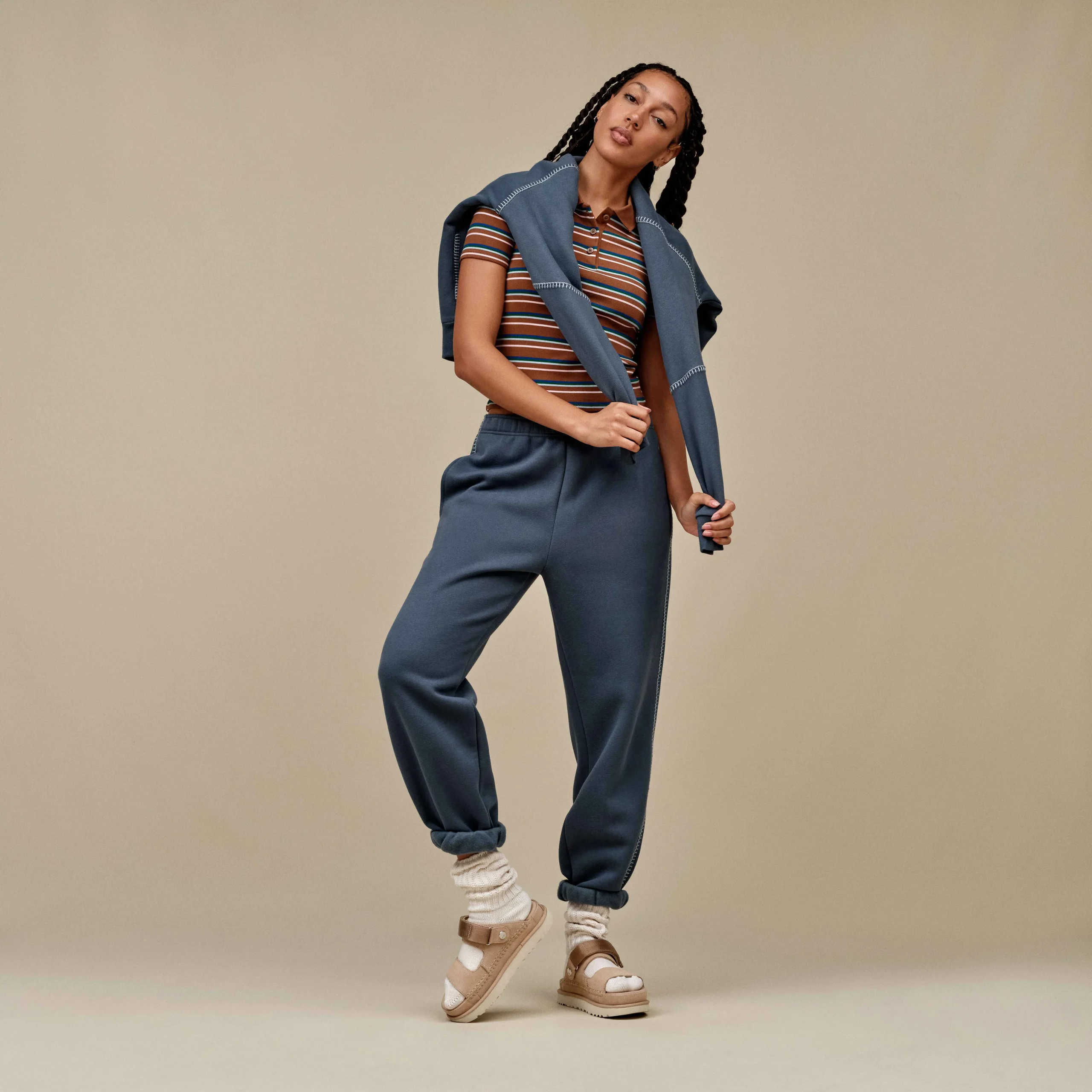 כפכפי נשים מדגם Goldenstar Glide מבית UGG בגוון Sand טבעי ואלגנטי. דגם אופנתי המשלב מראה נקי עם נוחות גבוהה לשימוש יומיומי.
