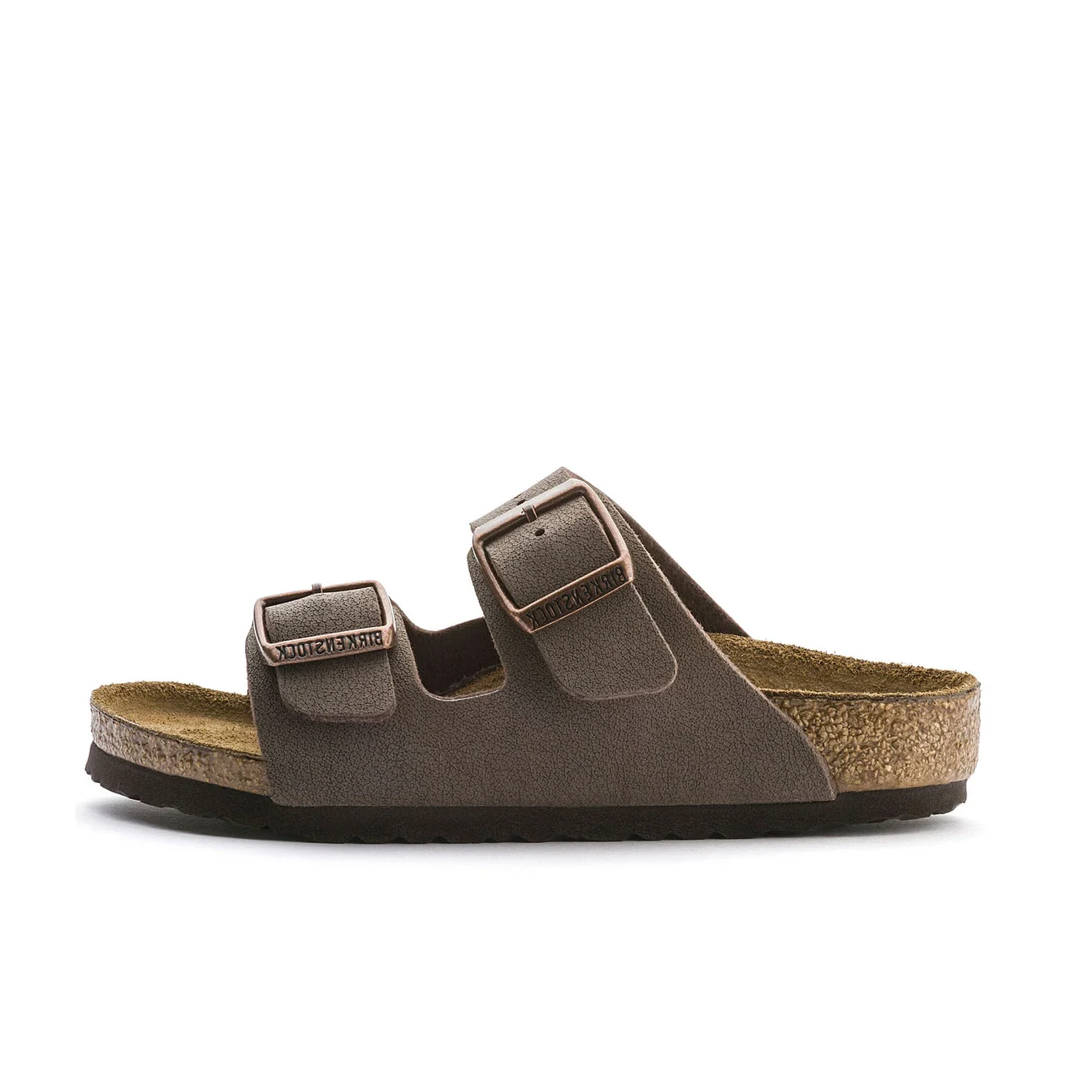 כפכפי בירקנשטוק מקוריים לילדים מדגם Arizona בגוון מוקה טבעי. הדגם כולל מדרך אנטומי מותאם לכף רגל צעירה, לצד רצועות מתכווננות להתאמה מדויקת.