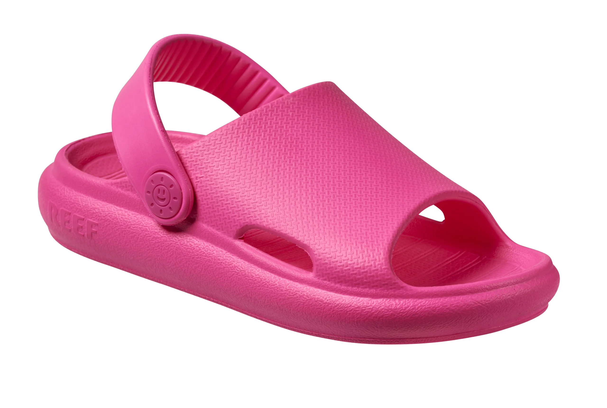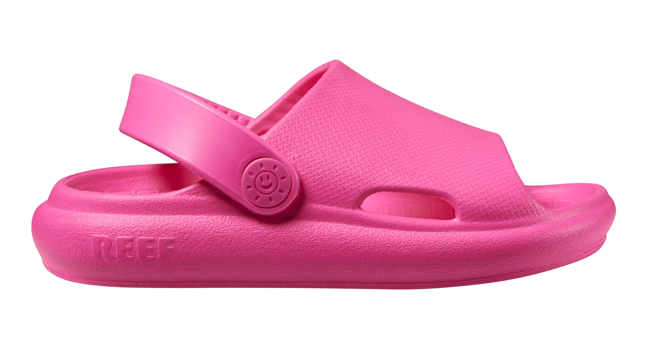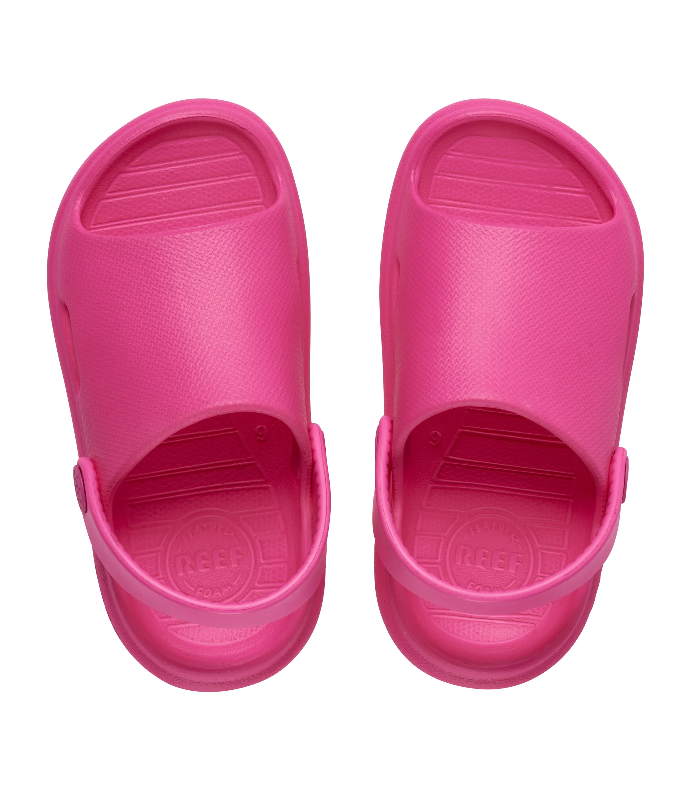 כפכפי ילדים מדגם Little Rio Slide מבית REEF בגוון ורוד בולט ושמח. דגם קל ונוח שמתאים במיוחד לפעילות יומיומית בקיץ.