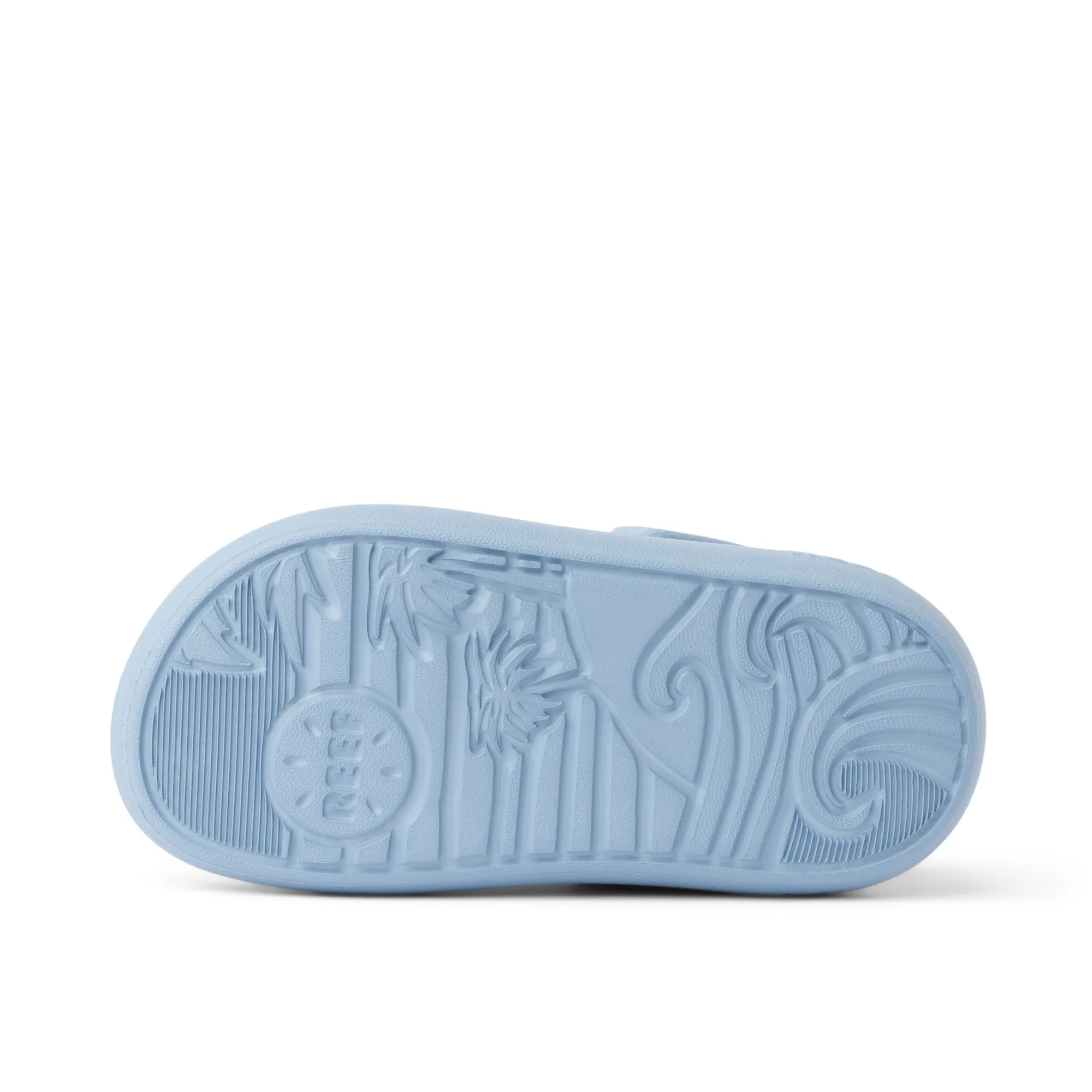 כפכפי נשים מדגם Little Rio Slide מבית REEF בגוון כחול Dusty Blue. דגם קליל ונוח במיוחד לשימוש יומיומי בקיץ.