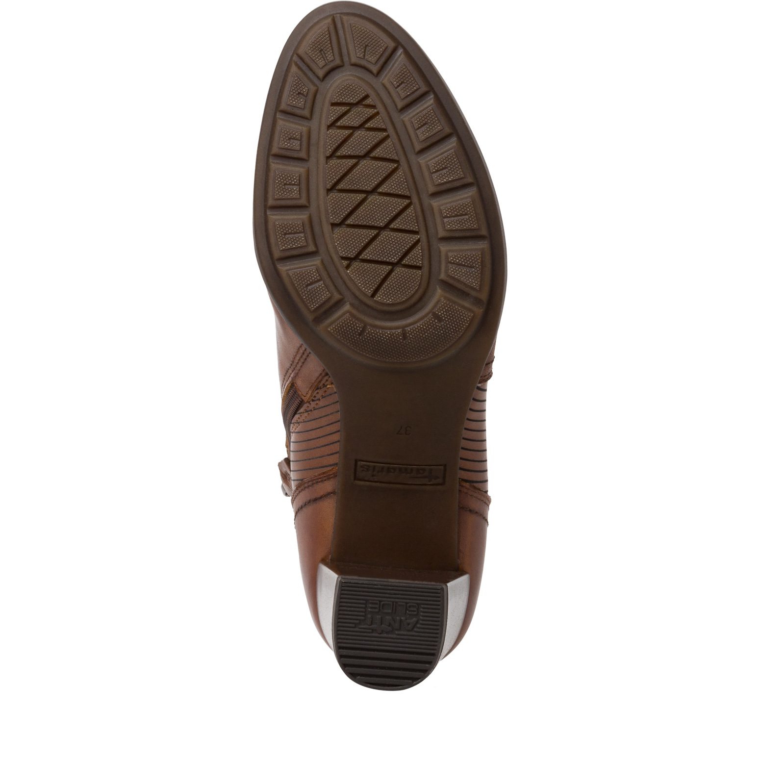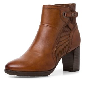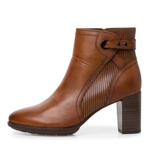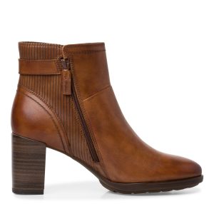 Tamaris / מגפוני עקב גבוהה מרובע רחב חום עור