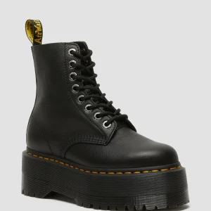 תפירה צהובה בולטת ולולאת עקב ממותגת Dr. Martens.