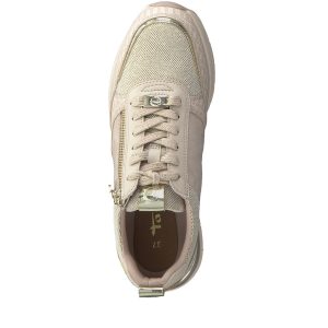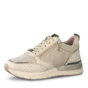 נעלי ספורט מבית Tamaris האלגנטיות וספורטיביות יחד. הגפה של הנעל, אינה דורשת טיפול מיוחד, ועשויה משילוב סינטטי וטקסטיל. הסוליה המוגבעת מאפשרת לך ליהנות מהיתרונות של נעלי עקב יחד עם חלוקה נכונה של העומס על כף הרגל, ומעניקה יציבות ונוחות בהליכה – כעת שום דבר לא יכול להוציא אותך משיווי משקל!