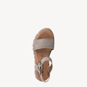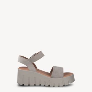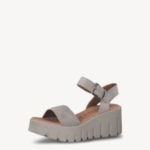Tamaris / סנדלי עור פלטפורמה טרקטור אפור אבן