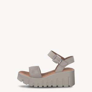 Tamaris / סנדלי עור פלטפורמה טרקטור אפור אבן