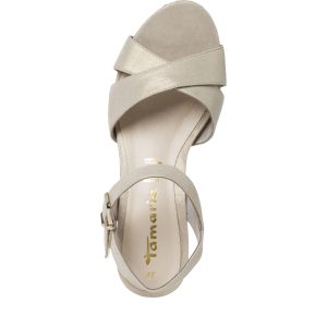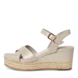 Tamaris / סנדלי פלטפורמה מעור פנינה מוזהב