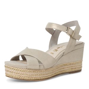 Tamaris / סנדלי פלטפורמה מעור פנינה מוזהב