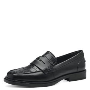 Tamaris / נעלי מוקסין מעור שחור קרוקו